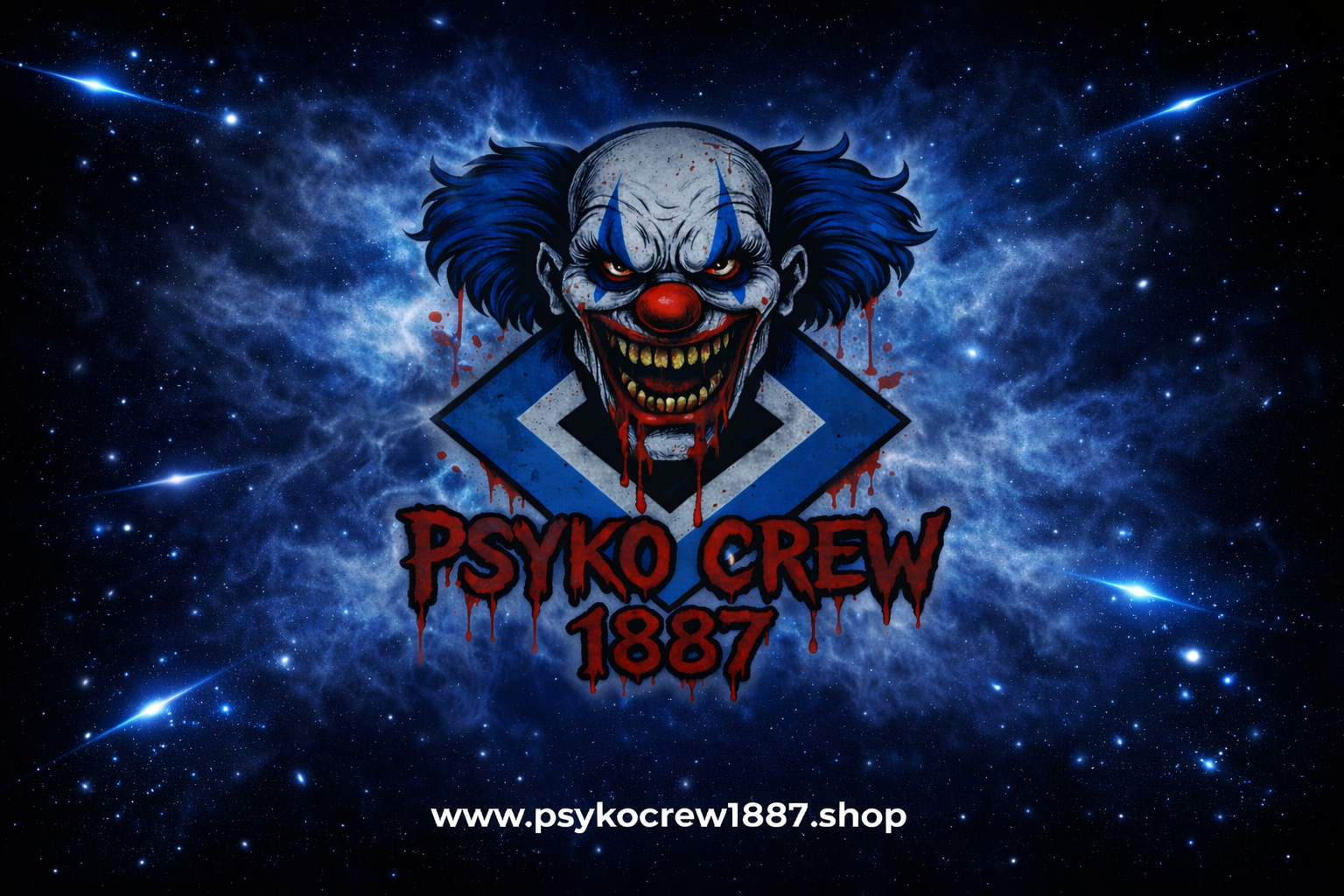 Im Psyko Crew 1887 Shop findest du keinen 08/15 Merch- hier gibt´s kompromisslosen Stuff für echte Supporter! Knallharte Aufkleber, auffällige Aufnäher oder exklusive Limitierte Klamotten- alles im Psyko Style.
